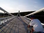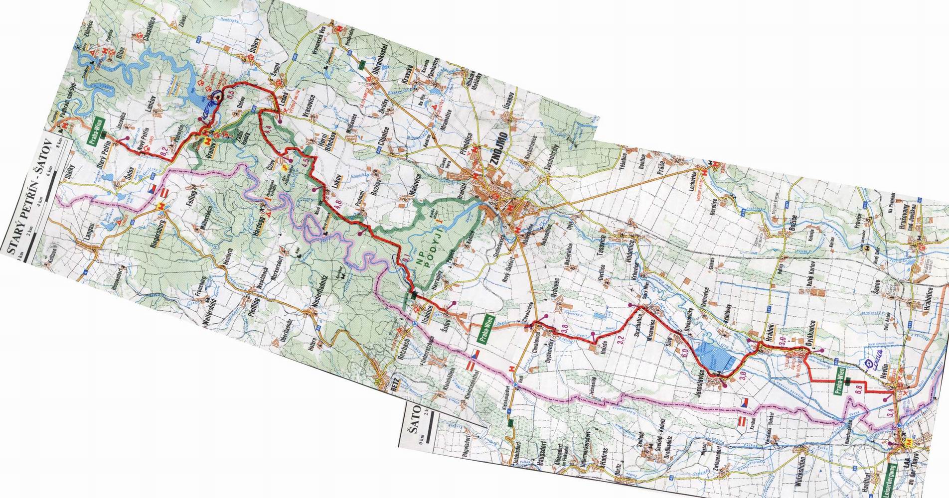 Probudil nás krásný sluneční den a s ním další šlapání. Od vody se nám moc nechtělo, ale nakonec jsme se dali na cestu po pěkné lesní cestě, která vedla Národním parkem Podyjí. Jeli jsme pěkně z kopečka k Dyji, ale museli jsme to objet po turistické stezce, protože most byl zničen loňskou povodní. Přijeli jsme k Dyji, přes kterou vedl lanový most, který byl pro 3 osoby,takže my dva a naše brašny byli akorát. Opět jsme se napojili na naši trasu a jeli směr Hevlín. To byl hraniční přechod, u něhož jsme byli rozhodnuti přespat. Cestou jsme projížděli krásné moravské vesnice a v jedné jsme se zastavili ještě naposledy na českém pivu a k němu jsme zdlábli utopence a aby toho nebylo málo dali jsme do druhé nohy ještě nakládaného hermelína, to byla dobrota. A tak jsme s nacpanými žaludky zas vyrazili. Další naše zastávka byla vesnice Sloup, ve které byl krásný obrovský mlýn, ale bohužel poslední prohlídka nám utekla o pár minut. Den jsme zakončili hledáním toho nejlepšího místečka na spaní, tak nás to vyčerpalo, že nám bylo nakonec úplně jedno, kde budeme spát. Spaní na louce bylo fajn i pár divočáků se na nás přišlo v noci kouknout.