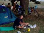 Tentokrát jsme teplé ponožky nepotřebovali, ale ráno bylo děsivé, zrovna vyměňovali okna vedle v pokoji a to byl rachot. A tak jsme velmi rychle zabalili a vyrazili k obchodu na snídu. Pak jsme vyjeli směrem na Novou Bystřici, to byla krásná cesta lesíkem. Při cestě jsme se byli kouknout na zříceninu Landštejn, kde jsme byli svědky lesního požáru. Dojeli jsme do Slavonic a tam si dali pivko a opět tradičně utopence. Bylo to moc pěkné město. Měli jsme už vytčený cíl dnešního dne a to byl kemp u Vranovské přehrady a jelikož jsme měli před sebou ještě pořádný kus cesty, museli jsme se utrhnout od pivka a jet. Cesta utíkala a my už byli u Vranovské přehrady, kde se před námi rozprostíral kemp a tak jsme zamířili přímo k němu a hned do vody, jé naše první koupání. Pak jsme si uvařili véču, zašli na pivko a šup do stanu.