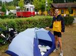 Hned ze začátku dne jsme se pustili do zdolávání zbytků hor, co nás čekal. Zmákli jsme to a už jsme byli v Zwettlu, kde jsme si u pumpy nakoupili a v mekáči opět najedli. Spokojeni jsme vyrazili dál na kopce, dojeli jsme do Gmündu, kde jsme udělali poslední fotku v Rakousku a už jsme byli v Českých Velenicích. Odtamtud jsme zamířili do Třeboně, opravdu bylo znát, že už jsme opět doma, díry v silnicích to dokazovali, ale na červenou turistickou to ještě nemělo. Jeli jsme přes Třeboňskou pánev, takže povrch nám přál na rychlosti nešetřit a proto za chvilku už jsme seděli v hospůdce, opět u českého piva (konečně) a smažáku, nedaleko Třeboně. Do kempu u Třeboně jsme dojeli po krásné cestě lesem kolem rybníků a tak plni radosti, že jsme opět doma, jsme začali stavět stan. Pak jsme si všimli dvou kluků, kteří si pinkali volejbal a tak jsme si řekli proč si nezahrát s nimi. Nadšeni souhlasili, bohužel za chvíli jsme to vzdali, aby nám zbyli ještě síly na další den, ale byla to příjemná změna pohybu.