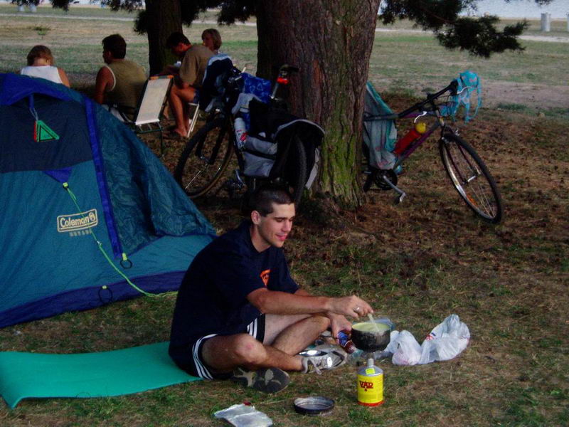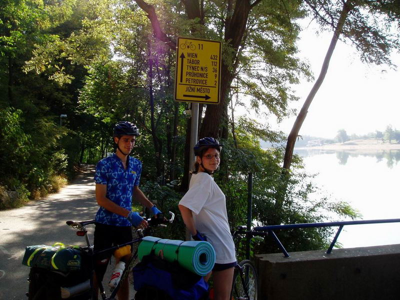 Je sobota 9. srpna 2003 a přípravy vrcholí. Kola vyblýskané a připravené na dlouhou cestu, ještě nosiče přidělat, na které přijdou brašny. Stůl je zavalen věcmi, které bychom měli dostat do brašen, ale nevím, nevím…. Nevypadá to,že by se tam vše vešlo a proto část věcí, které nám nepřijdou tak důležité vracíme, jako třeba trička, dvě bohatě stačí víc už by byl přepych. Nebo co třeba kartáček na zuby,ale ten bohužel neprošel, přeci jen spolu budeme muset komunikovat asi 14dní, tak proč si to ještě znepříjemňovat. Také jsme nemohli zapomenout na průvodce Praha-Vídeň, podle kterého jsme měli jet do Vídně. Když máme brašny na kolech a plné už jen důležitými věcmi, jedeme ty naše železné oře projet, abychom zjistili jestli vydrží tu zátěž. Po projížďce, která byla po tom balení přijemná, jsme usnuli jak mimča.