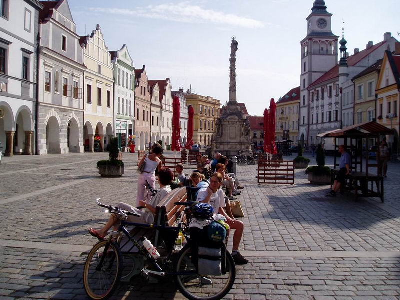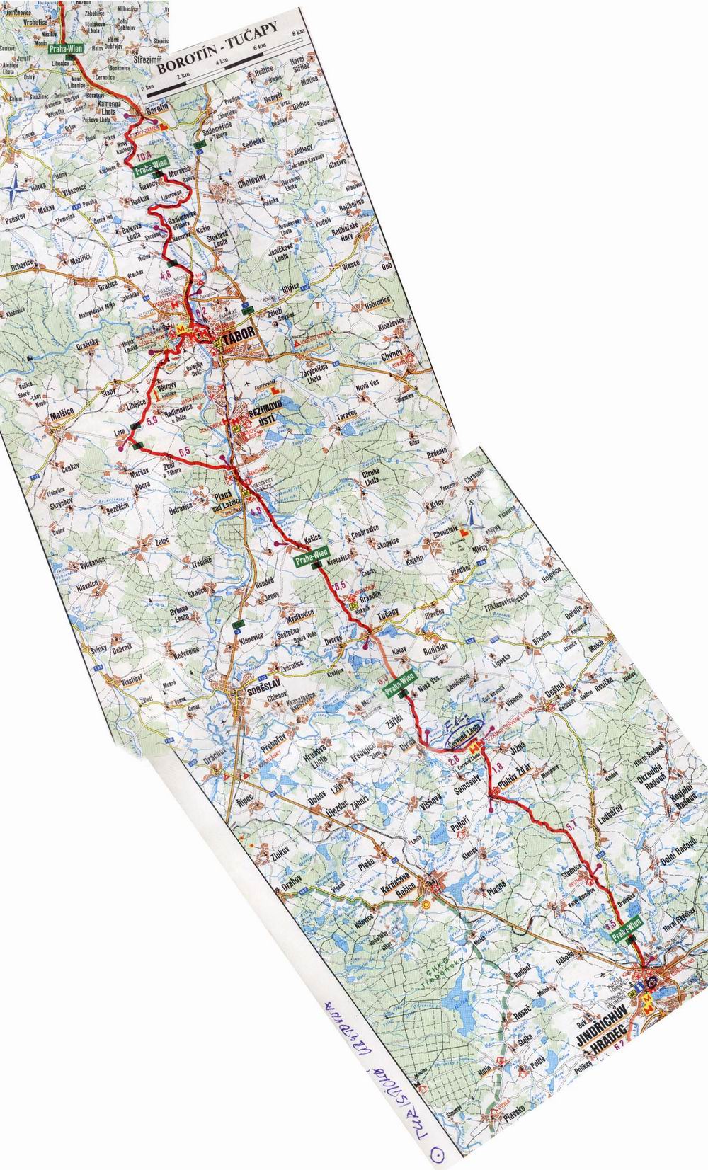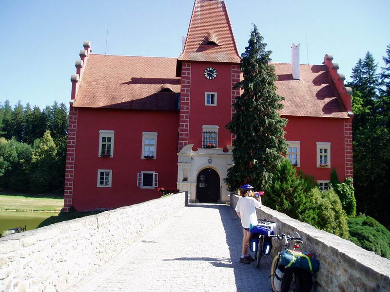 Ráno nás probudil zvídavý traktoriska, který se divil, kdo mu to přebývá na louce, ale naštěstí usoudil, že jsme neškodní a tak pokračoval v cestě dál. Noc byla zbytečně moc chladná, proč jsme sakra vyházeli ty nedůležité tlusté ponožky, no teď už se pro ně vracet nebudeme. Skočili jsme na kolo a hned jsme se zahřáli jízdou do pořádného kopce, ale odměna za to stála, nejen ten krásný sjezd do Borotína, ale i ta snídaně, na které jsme opravdu nešetřili. S plnými žaludky jsme se vydali na cestu do Tábora, kde jsme nakoupili a hned také ztratili značení naši trasy číslo 11. Po chvíli hledání, jsme se zas našli, ale nakonec jsme se rozhodli, že po ní nepojedeme, ale rovnou si to zkrátíme do Sezimova Ústí a pak se na ni opět napojíme. Cesta byla krásná podél řeky až do Sezimova Ústí, ale tam jsme trochu zabloudili a nevěděli kudy a tak jsme to vzali rovnou po hlavní do Plané nad Lužnicí. A z Plané jsme už frčeli opět po cyklotrase. V Červené Lhotě nás čekalo překvapení od Franty, který tam byl na dovolené týden před námi. Vše bylo připraveno, mělo to být schované na první příjezdové cykloceduli. Zvědavě jsme tam dojeli a byla tam KPZ /krabička poslední záchrany/. FRANTO DĚKUJEME,moc nás to potěšilo a šitíčko jsme sebou opravdu neměli. Sebrali jsme KPZ a vyrazili k zámku, který byl bohužel zavřen zrovna v pondělí a tak nám nezbývalo nic jiného než pokračovat v cestě až do Jindřichova Hradce, kde jsme měli vyhlídnutý kemp, ale bohužel, když jsme dorazili na místo kemp nikde, jen chatová osada. A jelikož jsme byli hodně natěšený na sprchu a pak na procházku městem, rozhodli jsme se, že se jen tak nevzdáme. A tak jsme vzali telefonní seznam a našli jsme turistickou ubytovnu, zavolali tam, místa byla volná a tak jsme se šli zabydlet, osprchnout a vyrazit do města na jídlo. Když jsme přišli asi kolem jedenácté, bacili jsme do postele a spali.