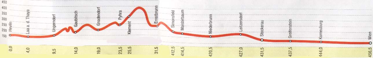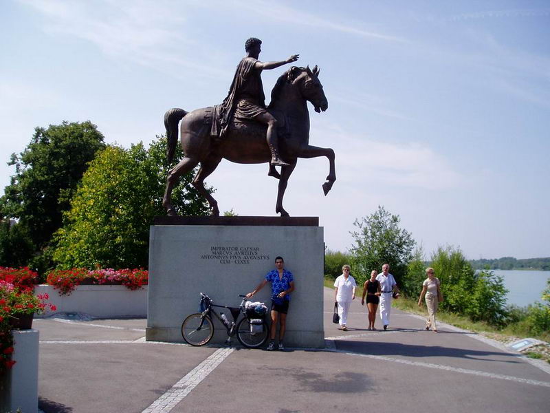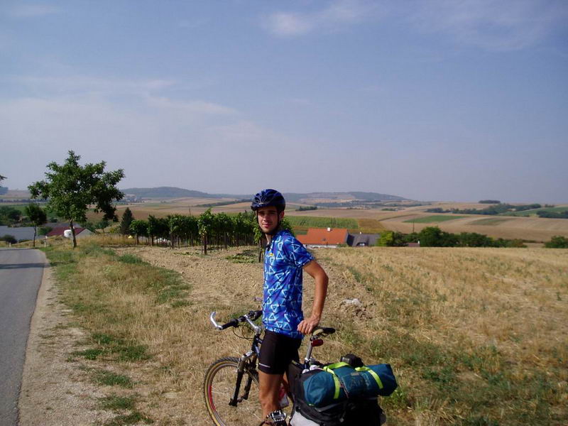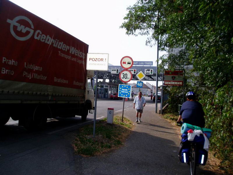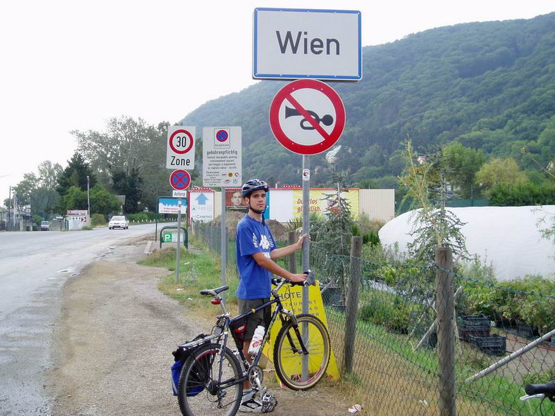 Ráno jsme se probudili s vyjetými kolejemi na zádech vymačkané z té cesty, na které jsme si postavili stan, možná to nebyl nejlepší nápad. Plný nadšení, že dnes už dorazíme snad k Vídni, jsme se rozjeli k hranicím. Jupí, tak už jsme v zahraničí, v Rakousku, jásali jsme a úplně jsme zapomněli sledovat cestu. Když jsme se zorientovali po chvíli, vyrazili jsme správnou cestou směr Vídeň. Foukal nepříjemný vítr, takže jsme vydali hodně síly i když jsme jeli z kopce. A proto jsme načerpali síly v místní hospodě u citronového pivka. No české pivo to nebylo, ale na žízeň dobré. Plný sil jsme vyrazili opět na cestu. Měli jsme už vybraný kemp poblíž Vídně ve městě Klosterneuburg, který byl na druhé straně Dunaje. Když jsme dorazili k Dunaji, jeli jsme stále po stejné straně řeky, s tím že se přebrodíme až na dalším mostě. Cesta byla krásná podél Dunaje, ale v tom nás zastihla bouřka. Ze začátku byl déšť velmi příjemný, tak aspoň jsme se nemuseli už večer mýt. Ale z příjemného deštíku se stalo malé krupobití, které nás zastihlo zrovna na přívozu, protože jsme pak zjistili, že v dáli žádný most není a tak jsme se museli nějak dostat na druhou stranu ke kempu. Na přivozu, jsme neměli kam utéci před deštěm a tak jsme se schovali za auto, naštěstí hodný pan přívozník si nás vzal dovnitř do budky, když po chvíli zjistil, že jsme cizinci, hned na nás začal mluvit asi maďarsky, s tím že je to naše rodná řeč. Po chvilce zklamáni zjistil, že mu ani tak nerozumíme a tak tím naše konverzace raději skončila. Konečně jsme byli na druhém břehu a vyrazili celý mokrý do kempu. Byl to velmi pěkný a zařízený kemp, kuchyň, prádelna atd. Postavili jsme si stan u živého plotu, který nám později sloužil jako prádelní šňůra, opravdu bylo vidět, že nejsme zdejší a že jsme zdaleka o tom svědčili naše smrdící ponožky rozvěšené kolem stanu. Strávili jsme v kempu dvě noci. A teď když tak přemýšlím, je fakt, že příští den ty stany kolem nás nějak vymizeli, to asi ty ponožky. Vykoupali jsme se, vyprali a vyrazili na procházku do městečka, nakoupili jsme cestou něco k pití, nejlepší úlovek bylo pivo, o kterém jsme až později u stanu zjistili, že se nedá pít, protože je nealkoholické a to my sportovci do sebe nemůžeme ládovat. Večer jsme zjistili, že náš tachometr nějak nezvládl bouřku a přestal fungovat. Ani po důkladné domluvě šroubovákem, nevydal ani hlásku. A tak jsem šli spát.