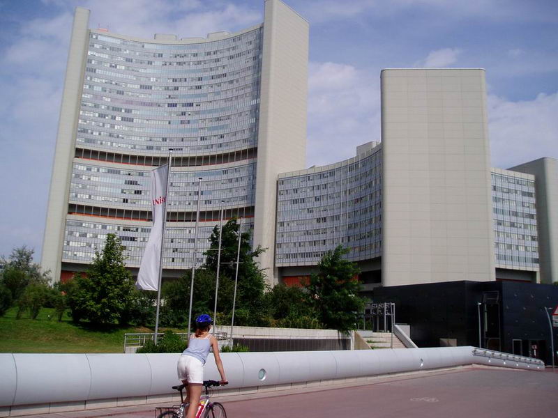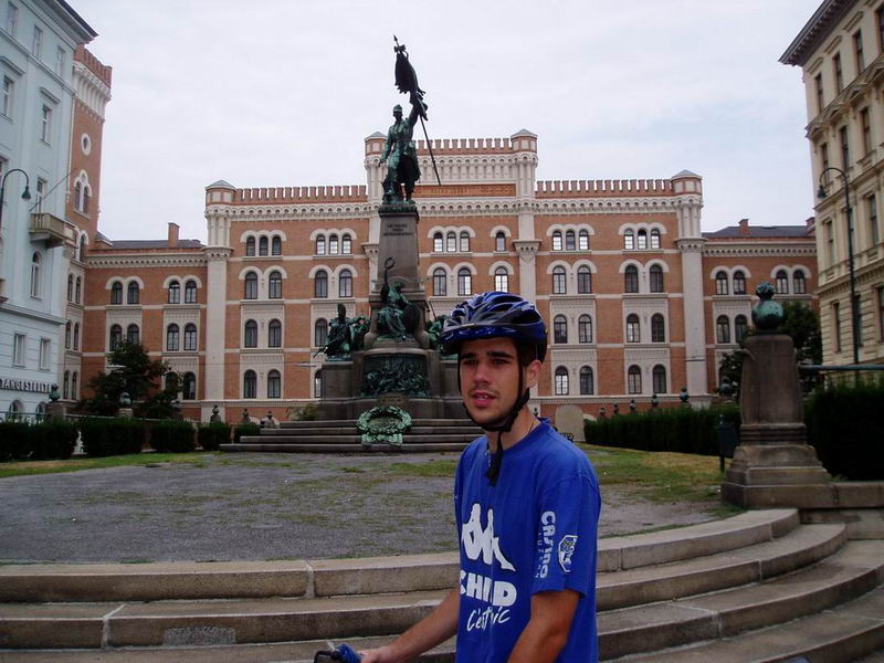 Ráno jsme si pěkně přispali a vyrazili směrem k obchodu na snídu. Se smutnými oči a prázdným žaludkem jsme zjistili, že mají zavřeno i přesto, že dnes podle jízdního řádu měli mít otevřeno. Podle kostelních zvonů, které ráno nás probudili, jsme usoudili, že dnes je asi nějaký svátek. A tak celý hladový jsme vyrazili do Vídně, tam snad otevřeno bude, vždyť je to hlavní město, říkali jsme si naivně. Cesta vedla podél Dunaje až do Vídně, hned jsme zamířili k centru, tam bude obchodů. Bohužel první obchod zavřeno, druhý taky, nervozita stoupala a agresivita také, ono jedenáct hodin a my stále bez jídla, našim útočištěm byl mekáč, konečně jsme se mohli do něčeho zakousnout a tak s plnými břišky jsme vyrazili po památkách. Na kolech jsme to zvládli dost rychle, ještě jsme zajeli k Technické univerzitě, to jsme museli vidět. A pak to vzali na druhou stranu řeky k Prateru, prošli jsme se tam a razili dál. Našim dalším cílem bylo UNO-CITY, ale také hlavně stále nějaký obchod, sice jsme už byli po snídani, ale co oběd a večeře…UNO-CITY bylo krásné moderní sídliště opravdu se vším, ale obchod měl i tam zavřeno. Projeli jsme se tam a sjeli k Dunaji a podél řeky jsme se vrátili zpět do kempu. K véče jsme si nakonec koupili kebab a udělali instatní polévku. No přežili jsme a usínali s nadějí, že zítra už žádný svátek nemají. Potřebovali jsme koupit přeci nový tachometr, abychom věděli jak jsme na tom. A také mapy, protože dál jsme neměli žádného průvodce.